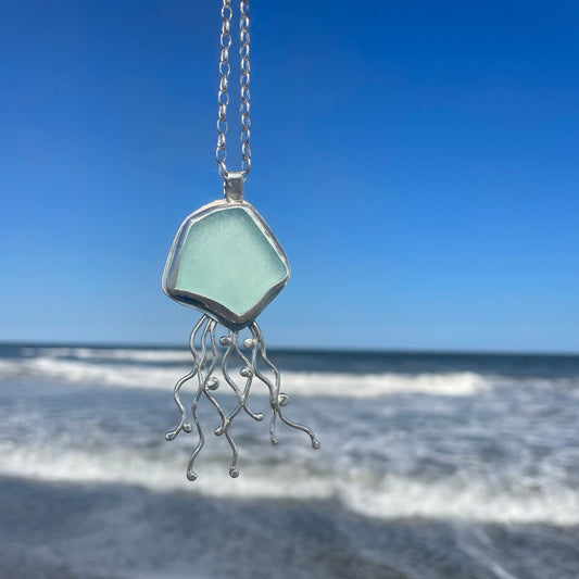 Light Aquamarine Sea Glass Jellyfish Pendant