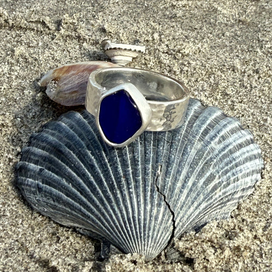 Cobalt Blue Sea Glass Ring - Size 7.5
