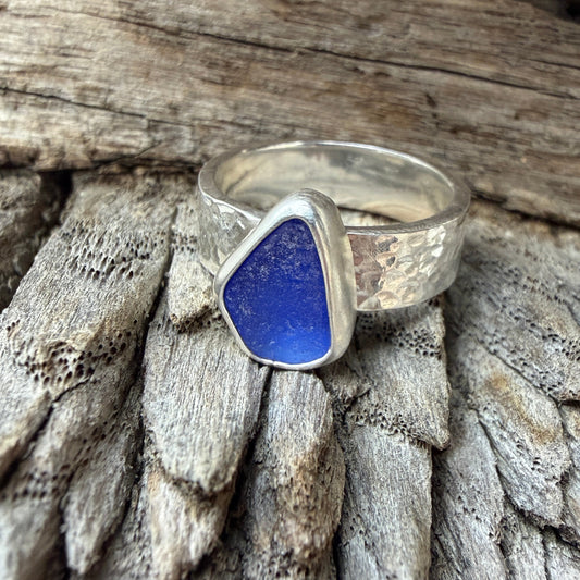 Cobalt Blue Sea Glass Ring -Size - 7.5