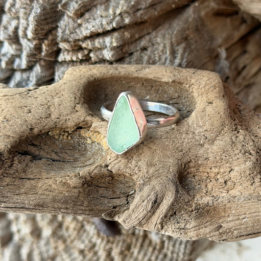 Pale Sage Green Sea Glass Ring - Size 7.5