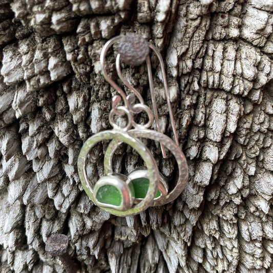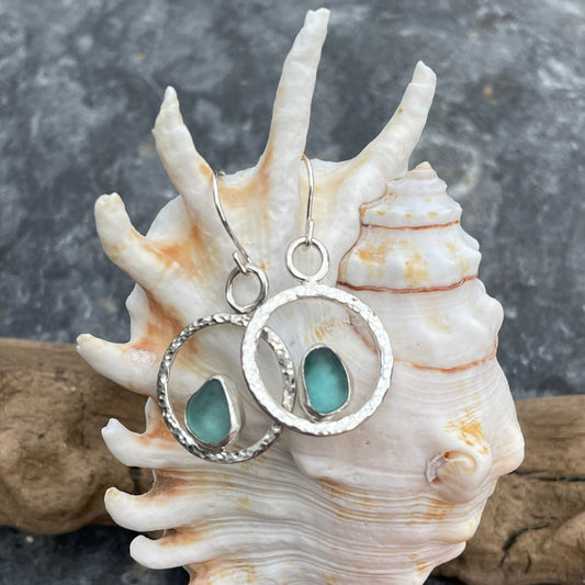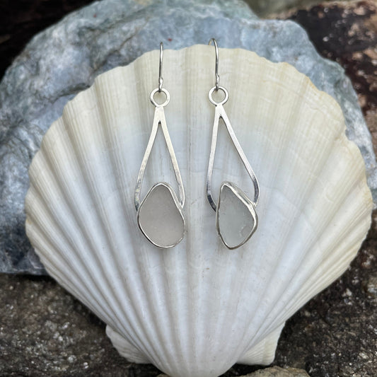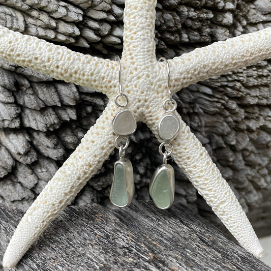 Sea Foam Green and White Sea Glass Dangle Earrings