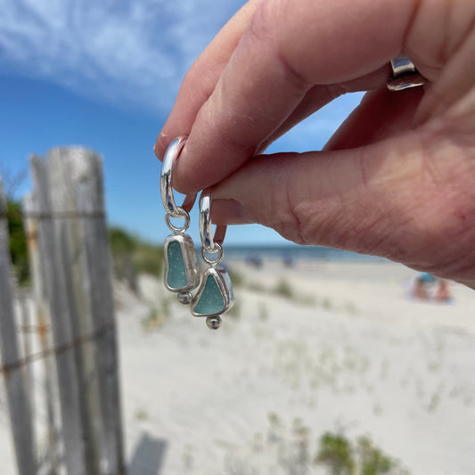 Sea Foam Green Sea Glass Dangle Teardrop Earrings