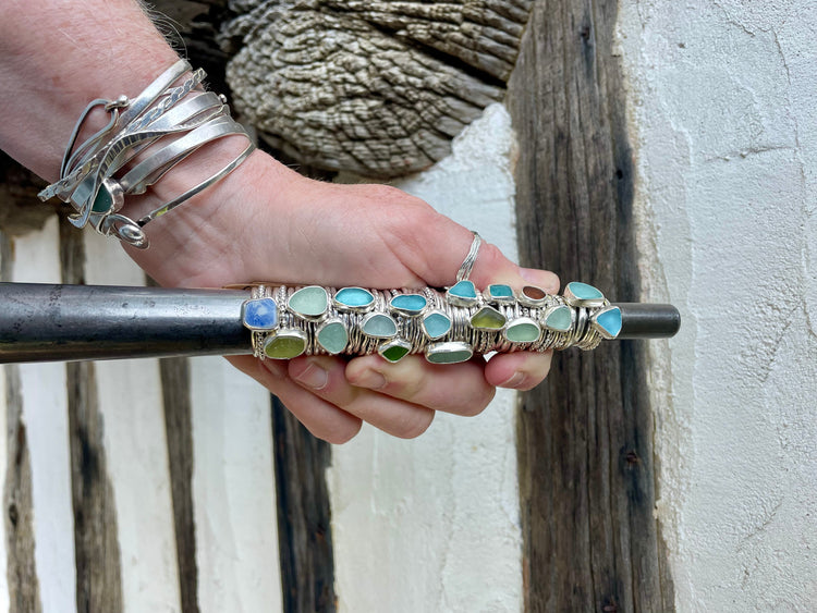 Pastel Blue Sea Glass Cuff Bracelet