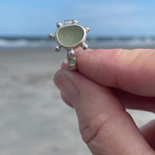 Soft UV Green Sea Glass Ring - Size 7.5