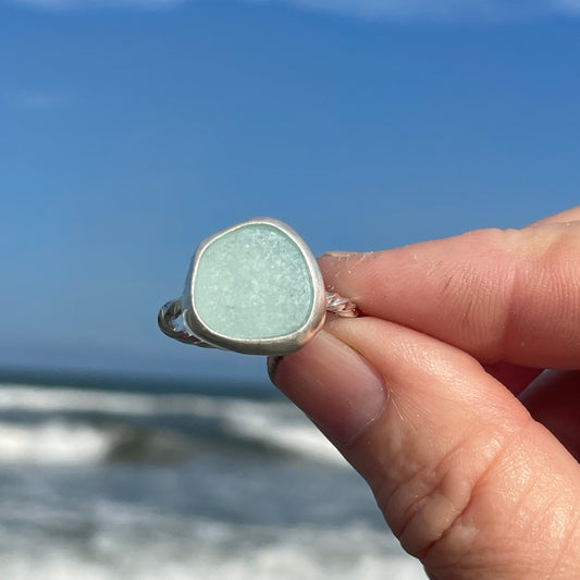 Sold outAqua Marine Sea Glass Ring -Size 10