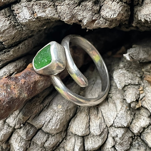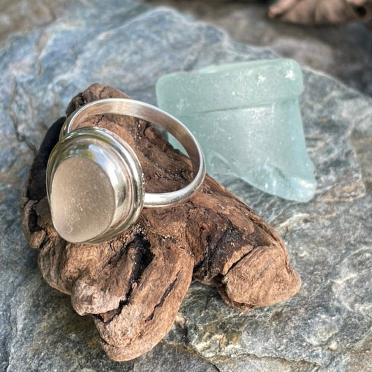 Sea Foam Green Sea Glass Statement Ring - Size 9.5