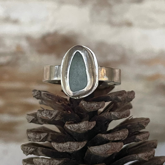 Sea Foam Green Sea Glass Ring - Size 7.5