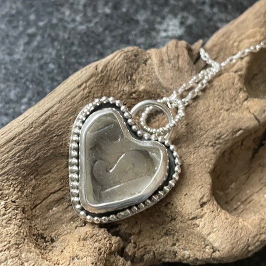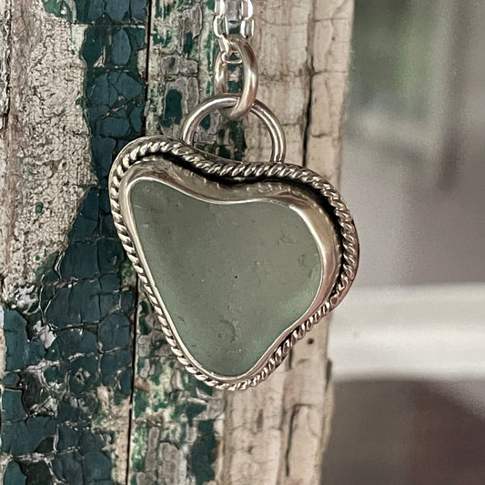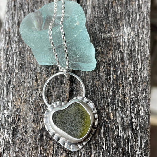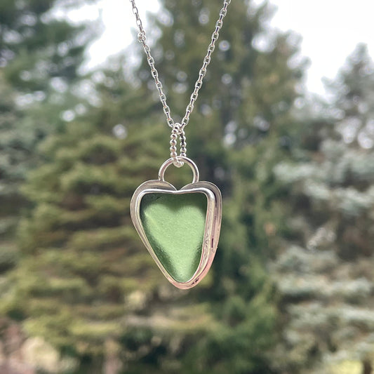 Vintage "PEPSI" Sea Glass Heart Necklace