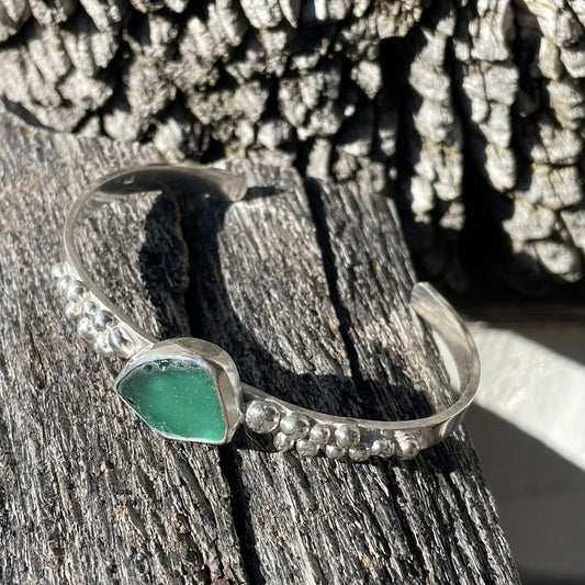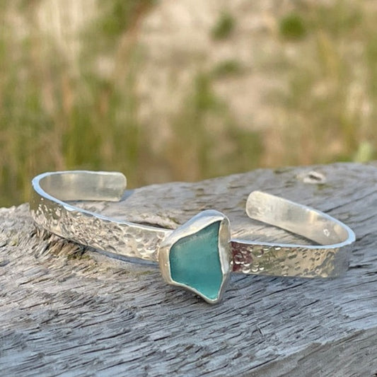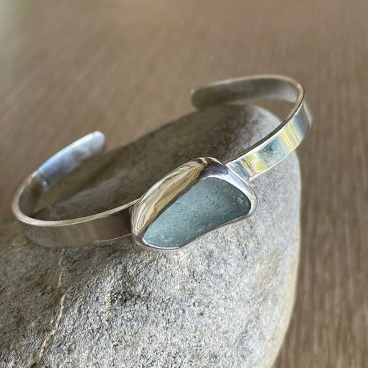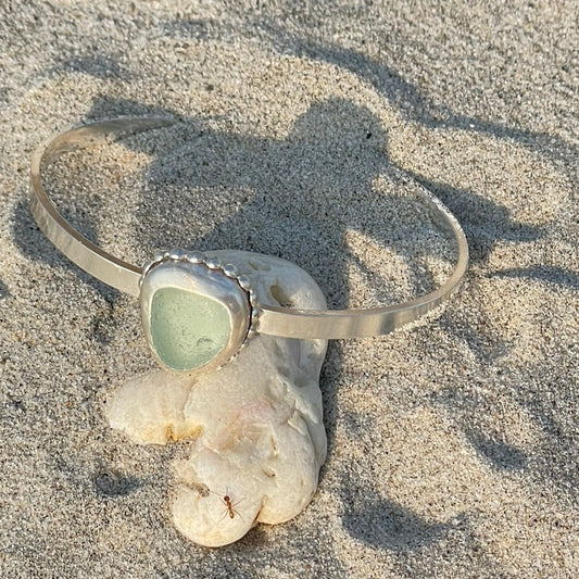 Sea Foam Blue Sea Glass Cuff Bracelet
