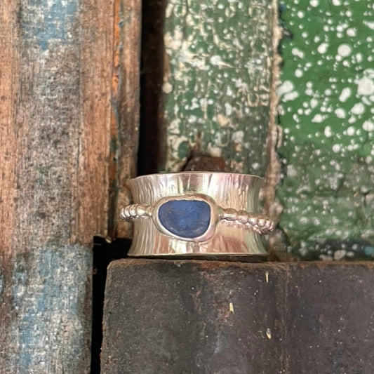CornFlower Blue Sea Glass Spinner Ring - size 6.5