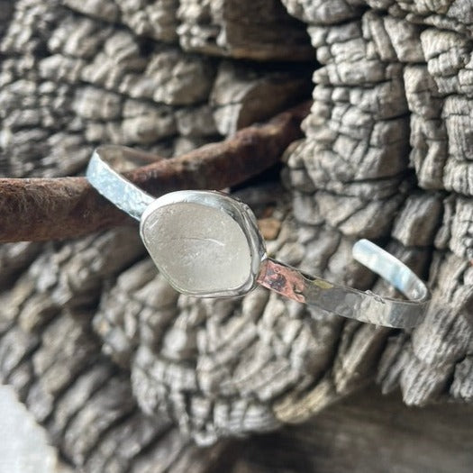 Sold outFrosty White Sea Glass Cuff Bracelet