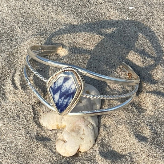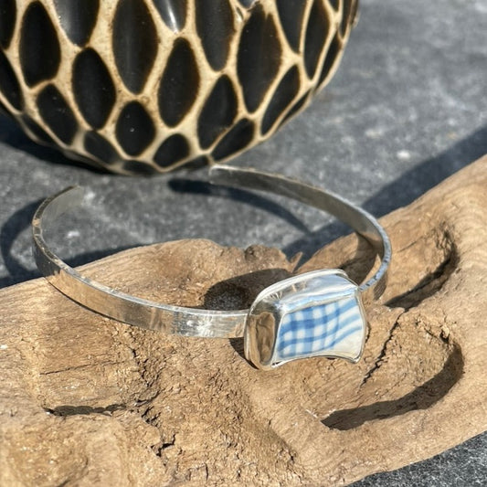 Breezy Blue Plaid Sea Pottery Cuff Bracelet