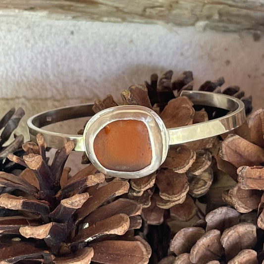 Sold outHoney Amber Sea Glass Cuff Bracelet