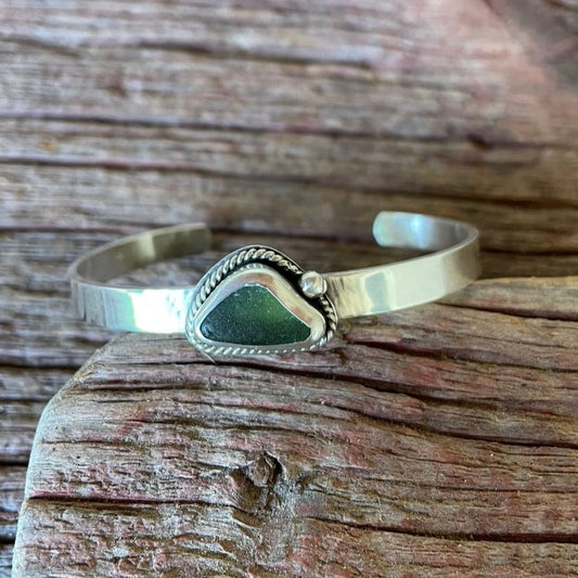 Sold outOlive Green Sea Glass Cuff Bracelet