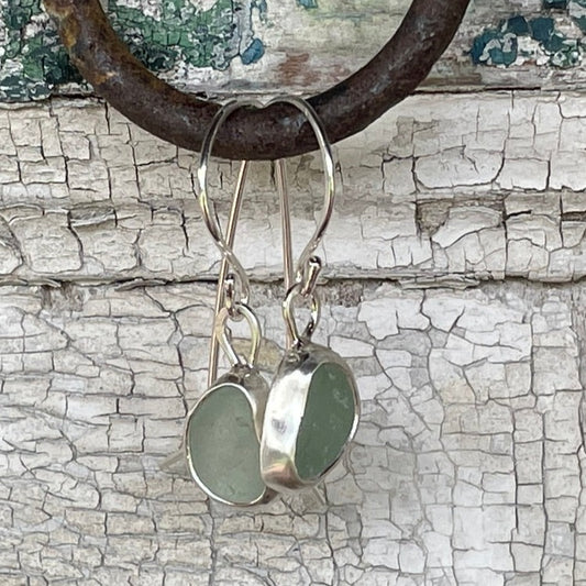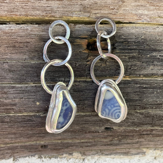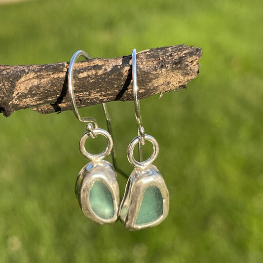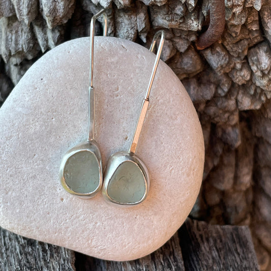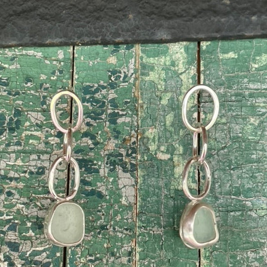 Sea Foam Blue Sea Glass Chain Dangle Earrings