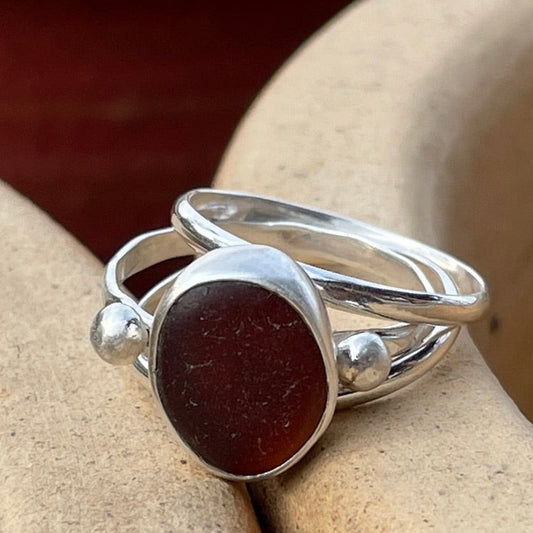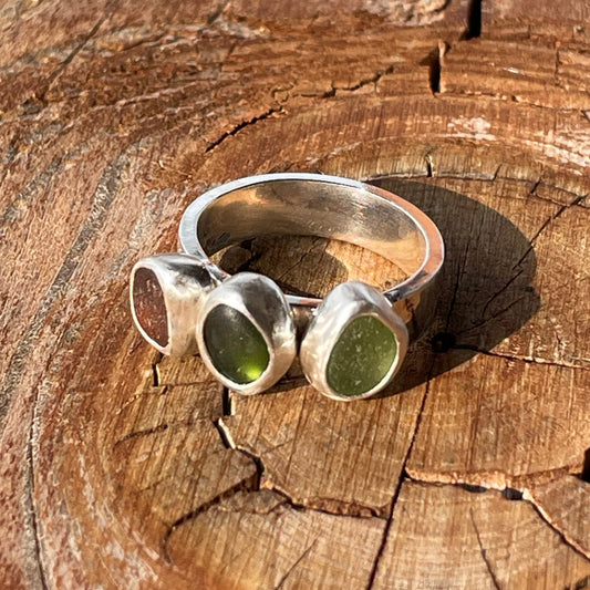 Three Piece Earthy Sea Glass Ring - size 6.75
