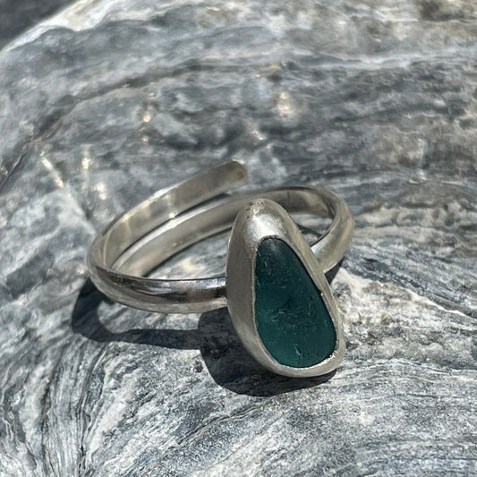 Sold outTeal Blue Adjustable Sea Glass Ring