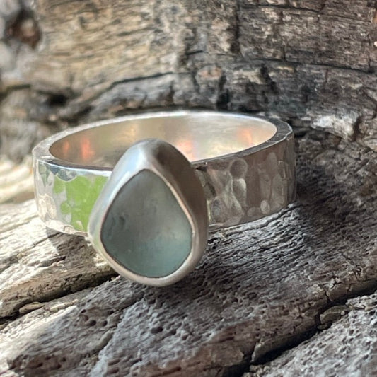Sold outSteel Blue Sea Glass Ring -Size 6.5