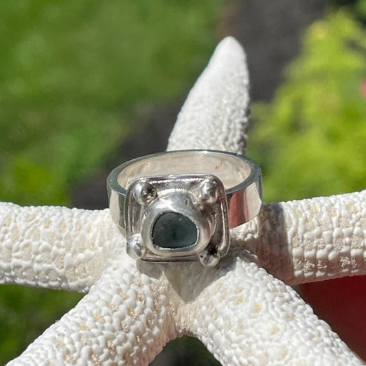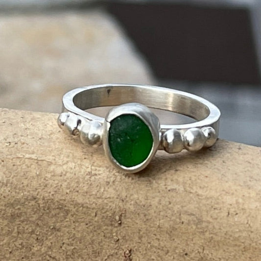 Green Beaded Sea Glass Ring -size 7.75