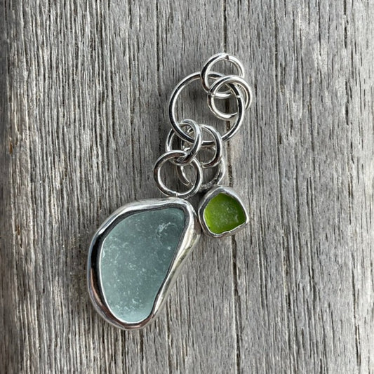 Sea Foam Blue and Lime Green Sea Glass Charm Necklace