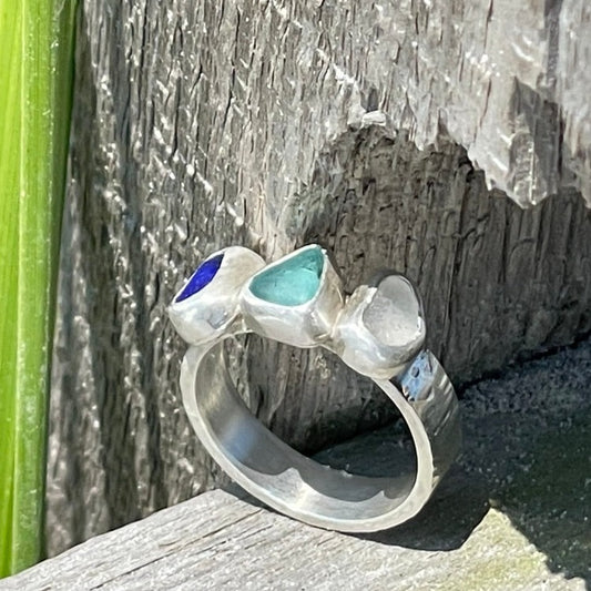 Three Piece Sea Glass Ring - Size 7.5