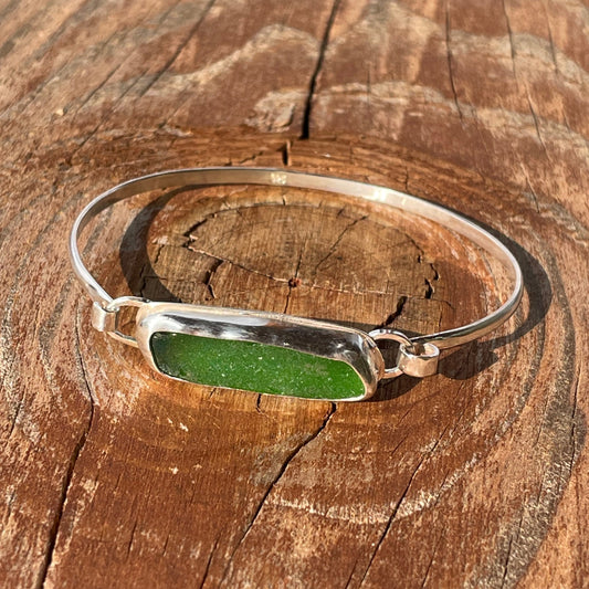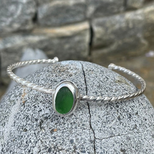 Kelly Green Twisted Sea Glass Cuff Bracelet