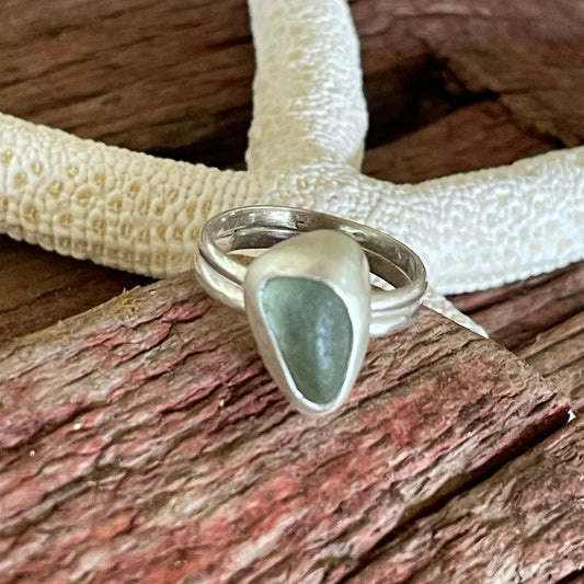 Sea Foam Green Double Banded Sea Glass Ring - Size 7