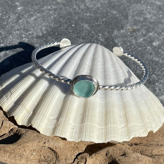 Light Aquamarine Twisted Sea Glass Cuff Bracelet