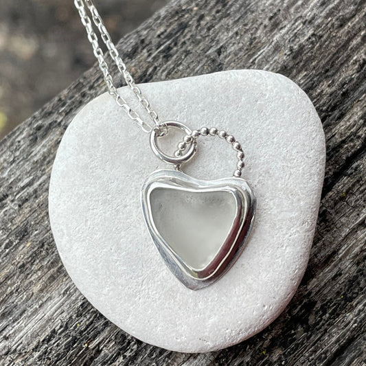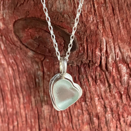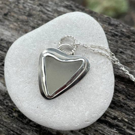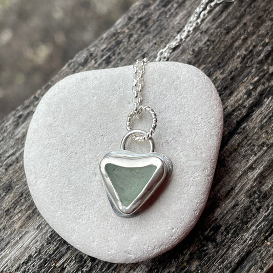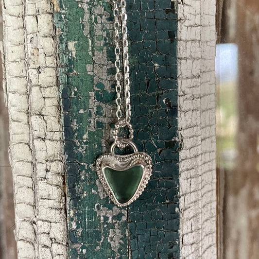 Sea Green Sea Glass Pendant with Hand Made Paperclip Chain