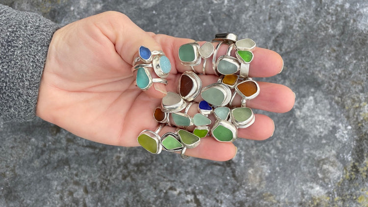 Dark Green Blue Sea Glass Ring - Size 9.75