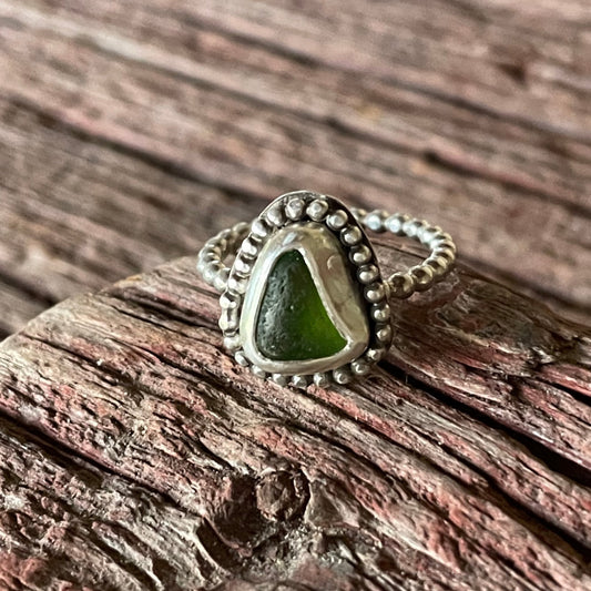Pale Olive Green Sea Glass Ring - Size 9.5