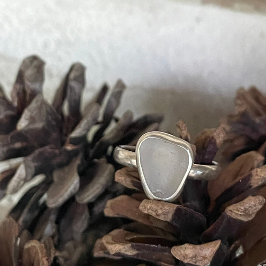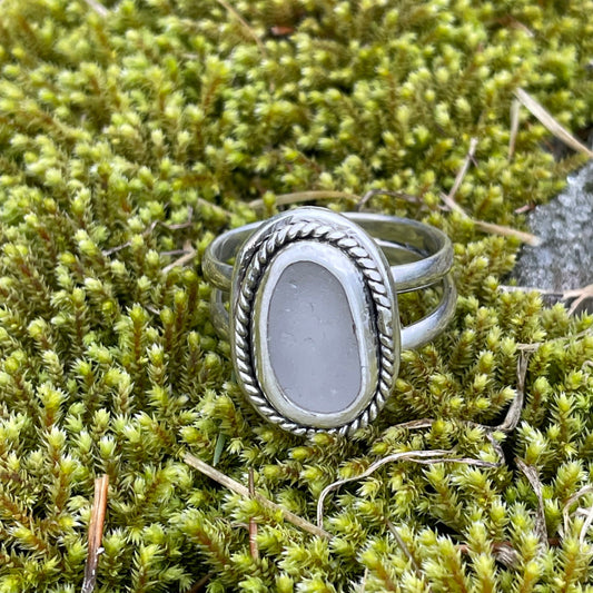 Frosty White Sea Glass Double Shank Ring - Size 9
