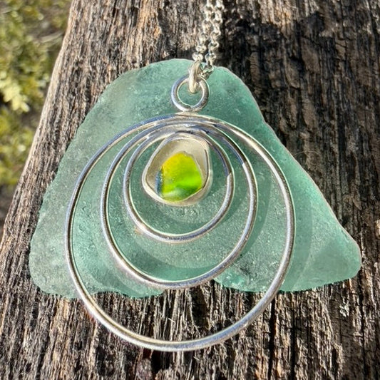 Each unique piece of jewelry is handmade from sea glass—naturally shaped by the ocean—that I’ve collected over the years. 925 Sterling Silver and Fine Silver is used for each piece of jewelry.